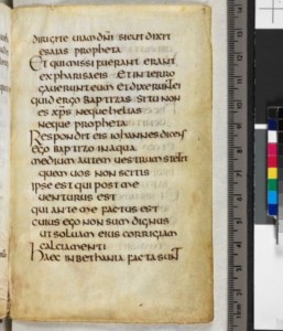 At first I simply held the camera with one hand and held the pages flat with the other. But then I started following the British Library rare manuscripts blog and decided to improve my digitizing process. The British Library and other libraries expended considerable effort to take photos in perfect conditions. These high-resolution images are full of details. Below is a page from the St. Cuthbert Gospel.