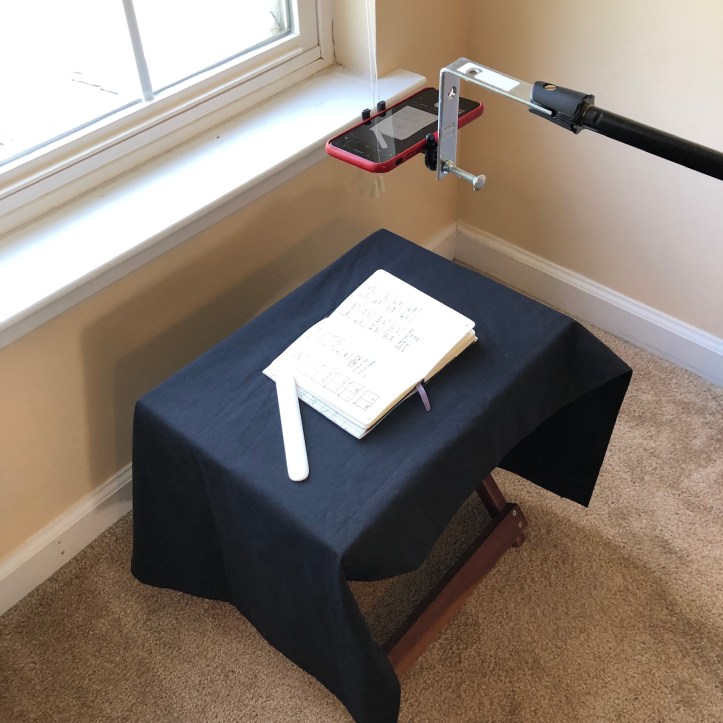 1. Setup a table near a window (for natural light) and cover with a black cloth (I use a black pillowcase) on the table.