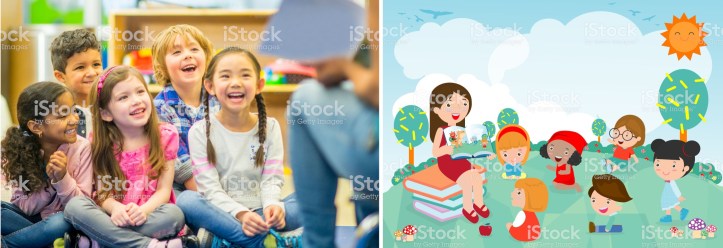 The iStockPhoto image library includes photos, illustrations, and video. The audio link takes you back to Getty Images. Below is the photo I used on the cover as well as an example illustration using the same search (children story). The price of the photo, as already mentioned, is listed at $33. The illustration is listed at $12.