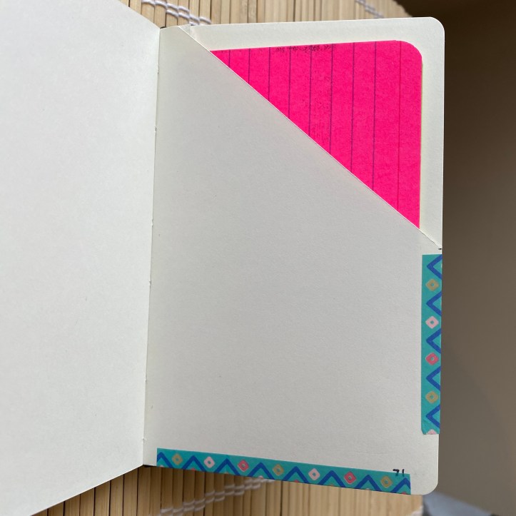 In the same post where I covered envelopes, I also provided instructions to create a small pocket. I use this pocket to store paper to leave with others. The pocket is another great place to store receipts and coupons. Moleskine notebooks come with a small pocket at the back, but this is another option that is easier to access and is more visible.
