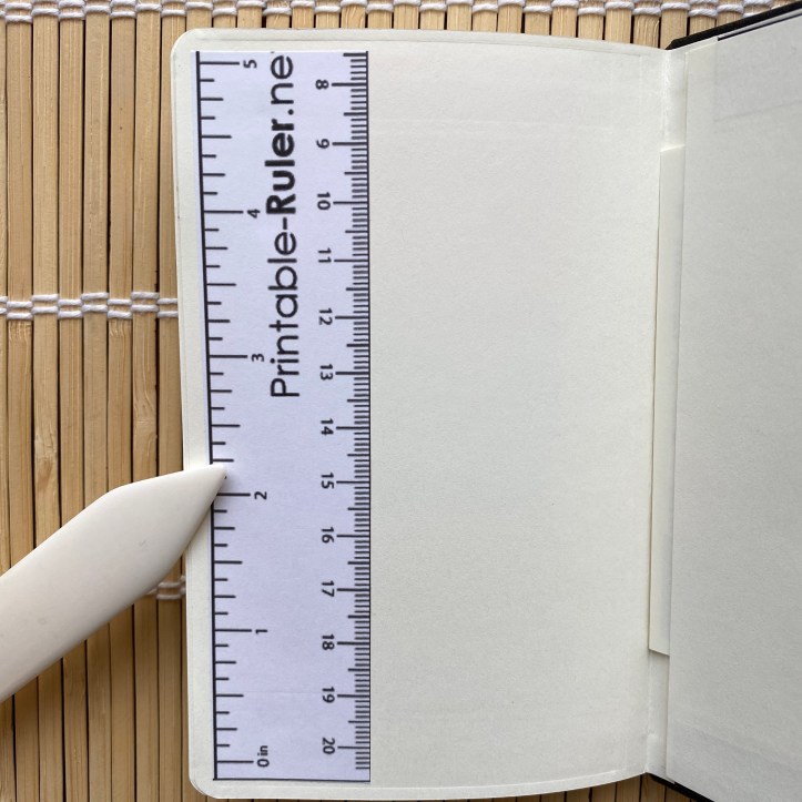 From time to time I find it helpful to measure something quickly. Since the longest measurement of the notebook is 5.5 inches, the ruler obviously short (5.0 inches), but it is still nice to have. Printable-Ruler.net has a variety of styles and lengths of rulers for printing. You can either print these onto label paper or print and glue them into your notebook.
