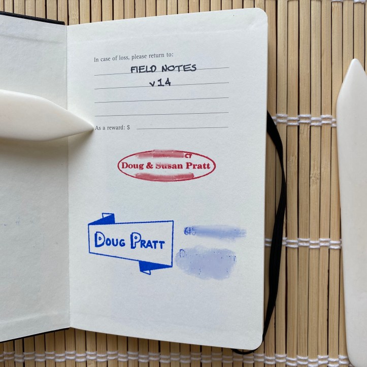 I also have two customer rubber stamps – address and email/phone – that I apply to the inside title page. I’ve only misplaced one of my daily-carry notebooks, and someone who found it emailed me about it using the provided contact information.