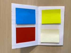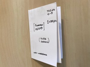 Presentation Planning – Two 2-inch by 1.5-inch sticky notes fit on each zine page. Rearrange the notes to enhance your presentation. Because of the zine format, all of the design work is self-contained in a small package. Plus, you can unfold the zine to see all slides at once.