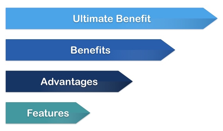 It is helpful to think about features, advantages and benefits as a series of layers.