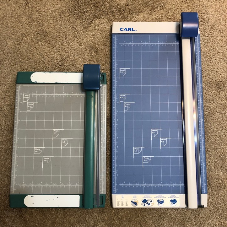 The final cutting tool that I use frequently is a paper cutter. Pictured below are two paper cutters from Carl.