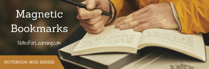 The small notebooks I use must withstand the wear and tear of transport via my back pocket and are opened often. For that reason, I cannot use any bookmarks or tabs that stick out beyond the covers. In this post I’ll share where to find and ways to use magnetic bookmarks.