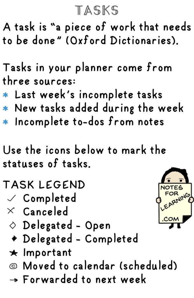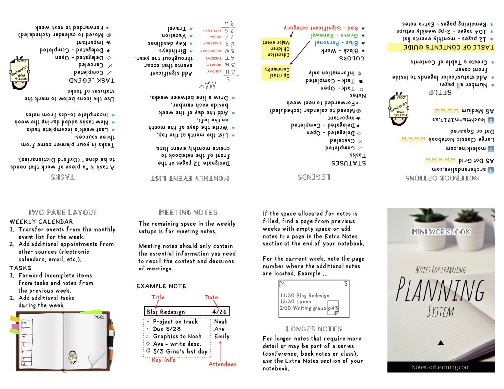 My system, which I’ve branded as the Notes For Learning Planning System, is largely based on the concepts I learned from Franklin Covey’s Focus course. However, I’ve also added elements that I like from Ryder Carol’s Bullet Journal Method.