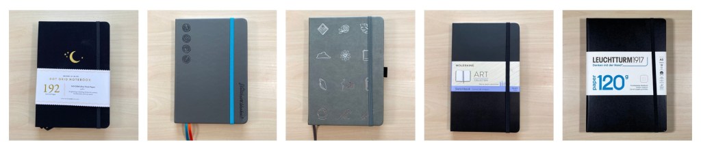 LEUCHTTURM1917. The Leuchtturm notebooks are designed for bullet journaling. While they appeared attractive in the bookstore, the paper was too thin – 70 gsm – for me. However, recently I discovered the version below with 120 gsm paper.