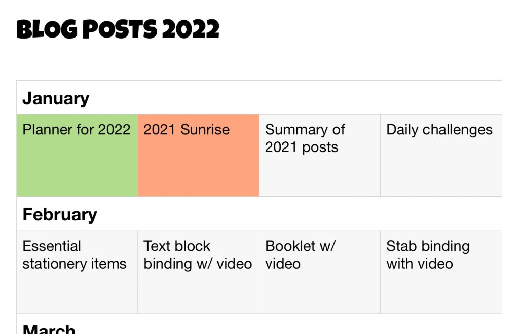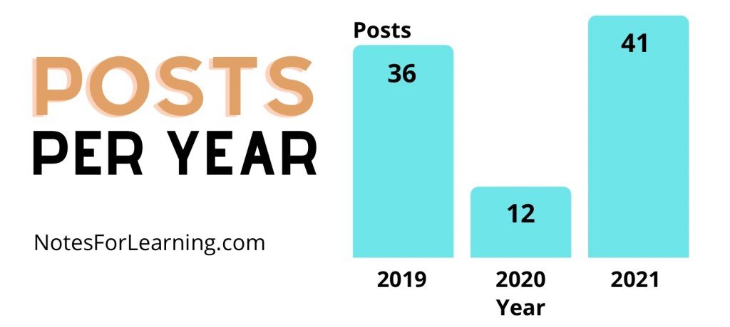 One factor that helped tremendously for 2021 was scheduling posts. I was able to publish several posts early in the year, so maintaining consistency was easier. I hope to follow the same process in 2022 and created a blog planner, with the goal of posting at least 48 times (4 per month).