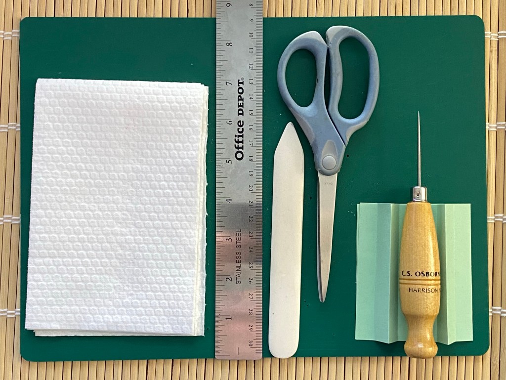 A note on materials and tools: I have included both common tools and materials as well as bookbinding-specific tools and materials for this project.
