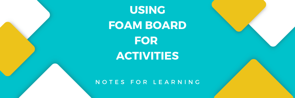 Foam board is also useful to help create materials to encourage activity. With a small collection of tools and some planning you can create three-dimensional objects for games, planning, and learning.