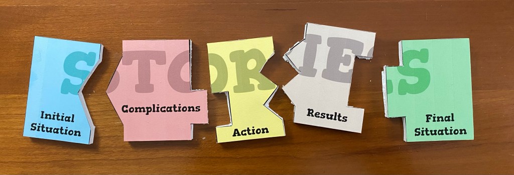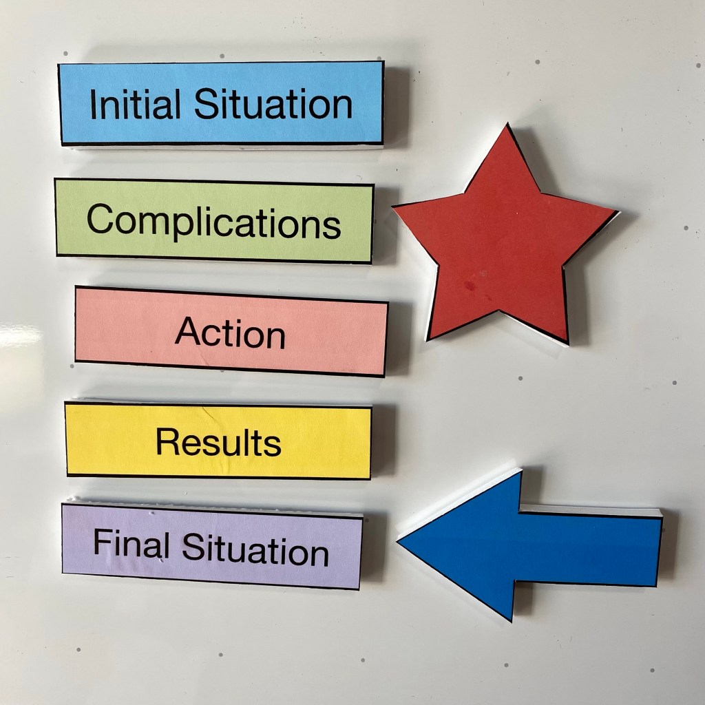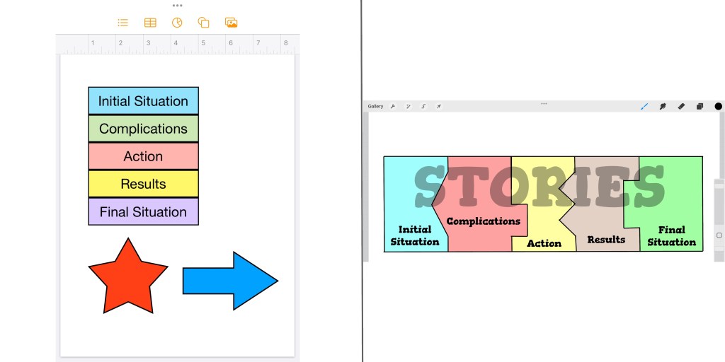 Create and print designs. For the shapes (arrow and star) and the rectangular story structure elements from Story Secrets from Scripture, I used Apple Pages. For the story structure elements as puzzle pieces I used Procreate.