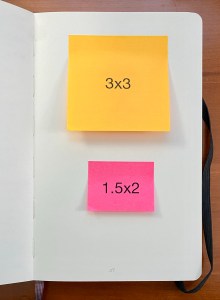Self-adhesive notes come in a variety of sizes and colors. The 2 sizes I use most often are 3×3 inch and 1.5×2 inch.
