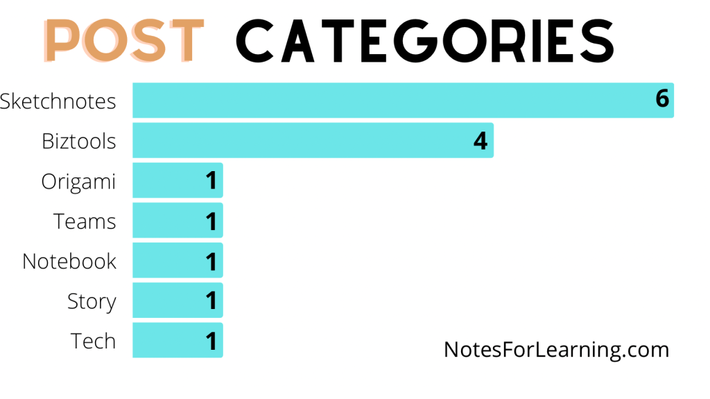 My goal to post weekly slipped a bit during this year’s first quarter, but my numbers improved because of the sermon notes (labeled as “sketchnotes” in the chart below).