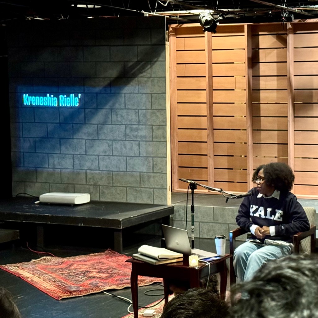 Today’s event was held at an intimate theater where you could hear the presenter without a microphone. The speaker, Kreneshia Riellé is a local Chattanooga resident who curates exhibits and spaces. Kren spoke about her perspectives on rhythm and pain.