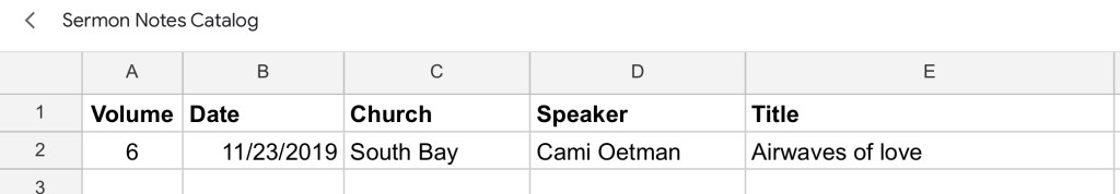 Recently I reconnected with a Cami, a speaker who shared at my church in 2019. I searched for her name and found the date and title of her sermon. That brings me to Part 2 of my sermon notes catalog.