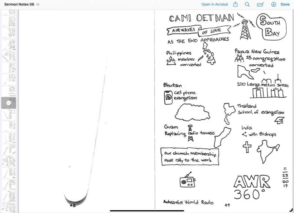 For Cami’s note from 2019, I found the notebook number and date of her sermon in the Google Sheets spreadsheet and then opened corresponding PDF to find the note.