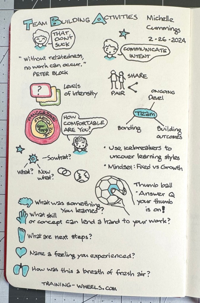 I had the opportunity to attend a training conference in Florida at the end of February. The first session I attended was this great presentation by Michelle Cummings from Training-Wheels.com on effective team-building activities.
