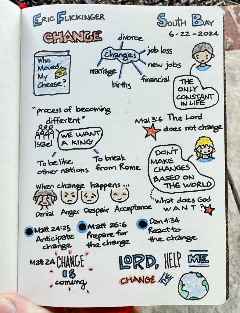 Usually I take notes by hand in a notebook. Afterwards I scan in the note and then edit them on my iPad. For this note, I decided to add color with watercolor pencils directly to my notebook.