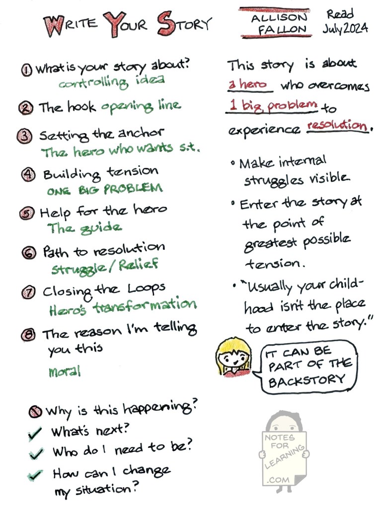 Amazon suggested this book on memoir writing. Write Your Story: A simple framework to understand yourself, your story, and your purpose in the world by Allison Fallon is a fairly short book, based on her writing seminars.