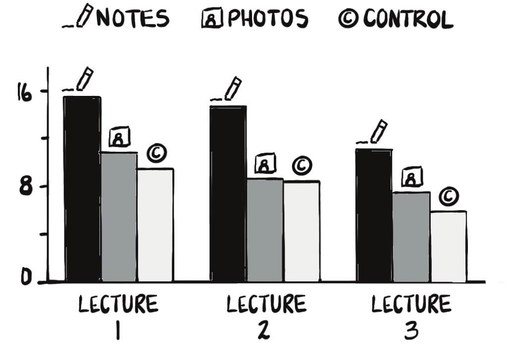 The authors concluded, “Taking and reviewing photos of lecture content was just as ineffective as not taking any notes at all. Using one’s smart-phone to take photos is not necessarily a smart way of learning.”