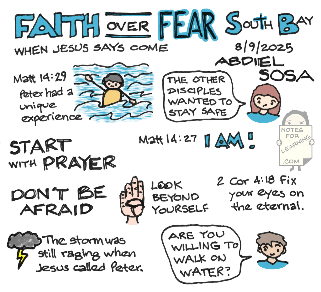 Abdiel shared the story from Mark 14 where Peter stepped out of the boat when Jesus said, “Come,” and alternated this story with stories of mission trips Prints of Hope has sponsored.