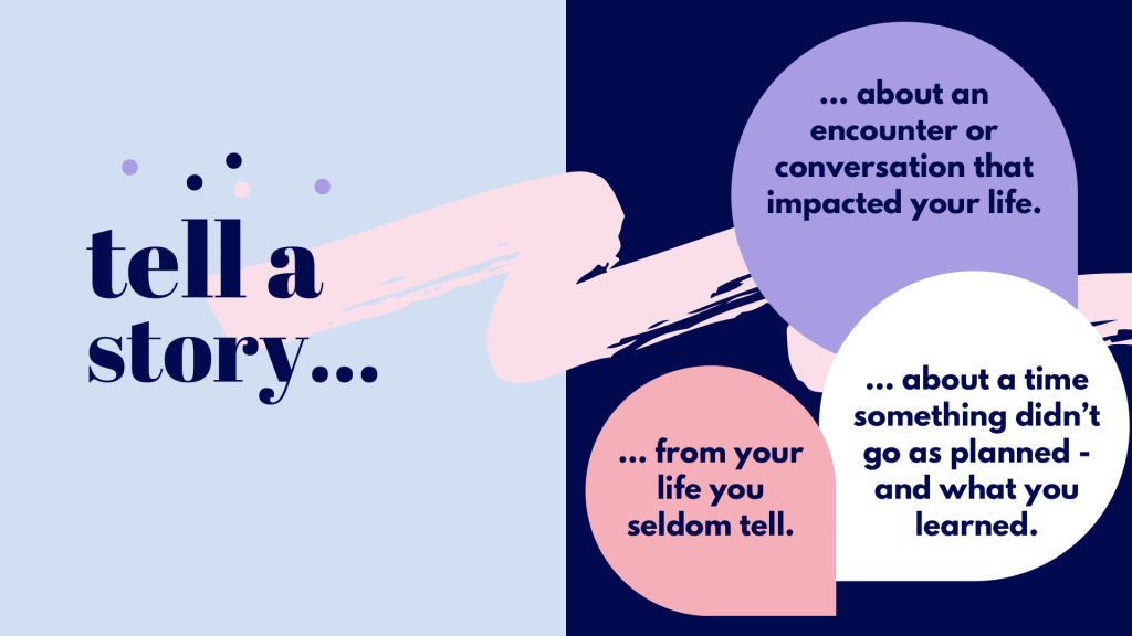 After introducing the concept, we separated into pairs. None of the prompts the presenters suggested resonated with Amanda (my partner) and me, and we both had story ideas we thought of before the activity started. We decided to share our stories. It turned out that both of us shared marriage stories about how we met our partners and challenges we faced.
